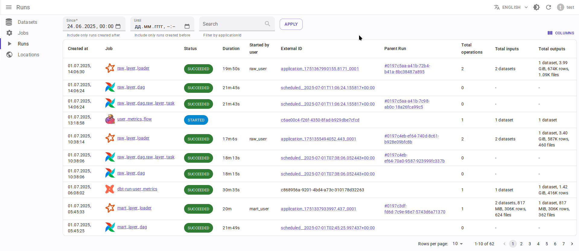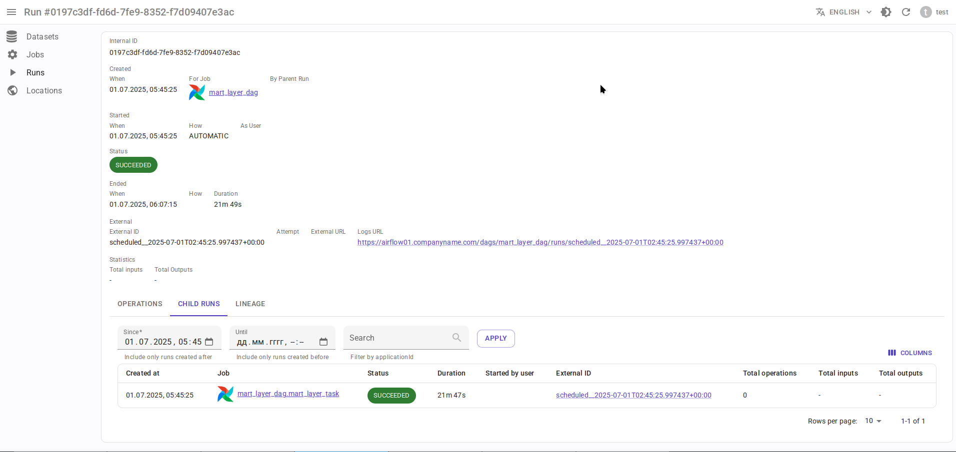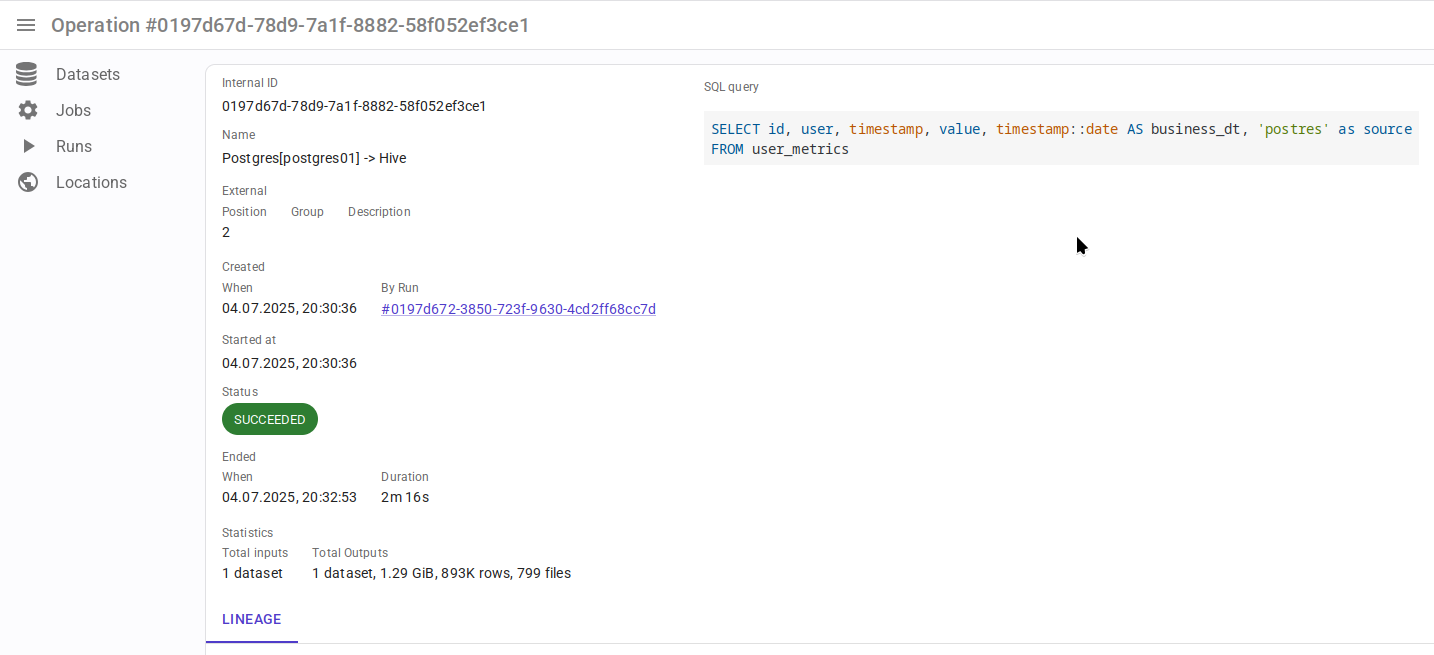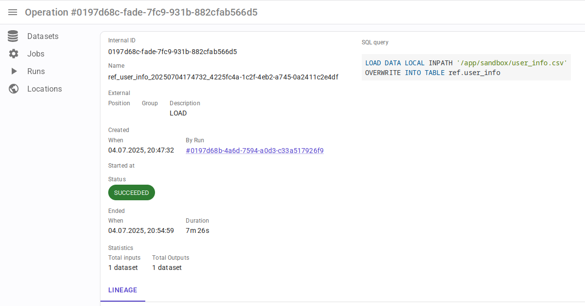 - Граф lineage строится с пользовательскими временными границами (в отличие от Marquez, где граф строится только для последнего запуска задачи).