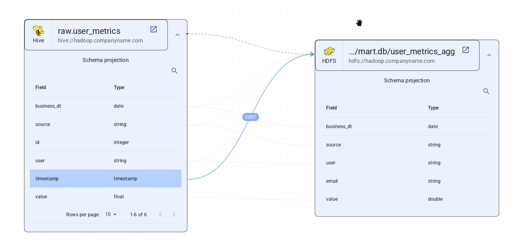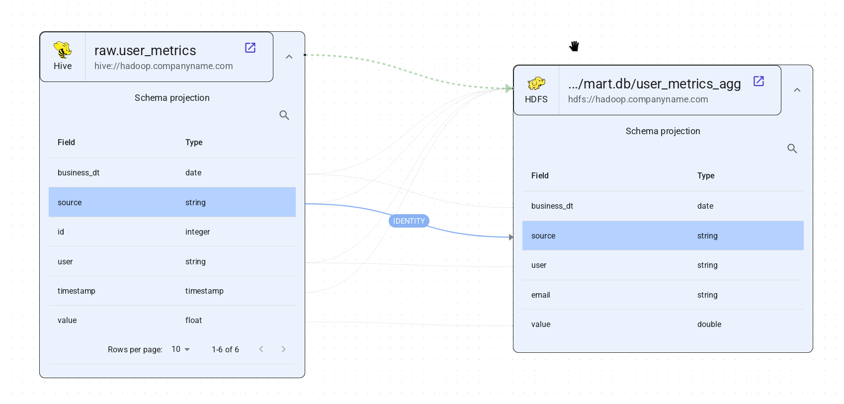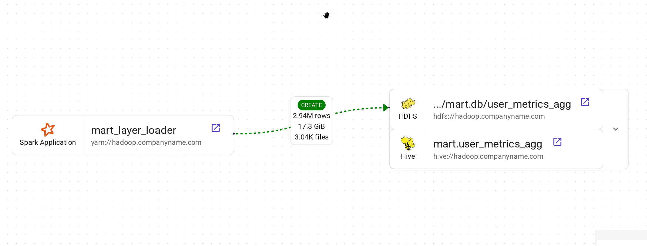 Представляет отношения наборов данных, такие как Таблица в метасторе Hive → расположение таблицы в HDFS/S3 и наоборот.