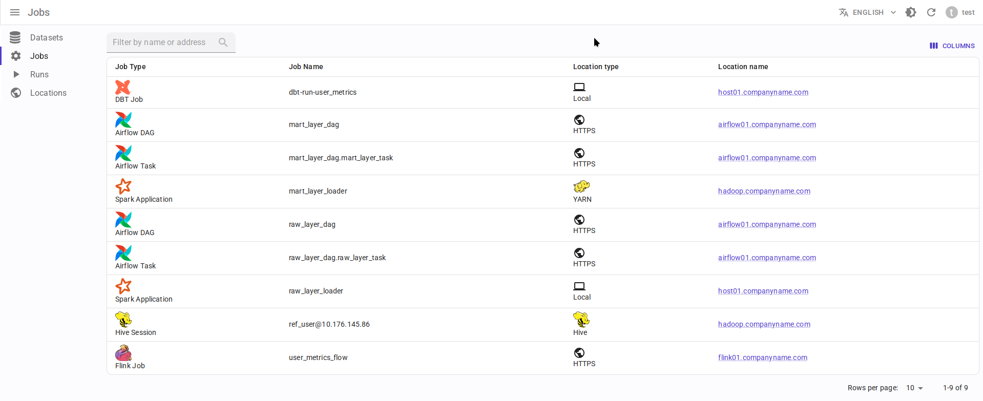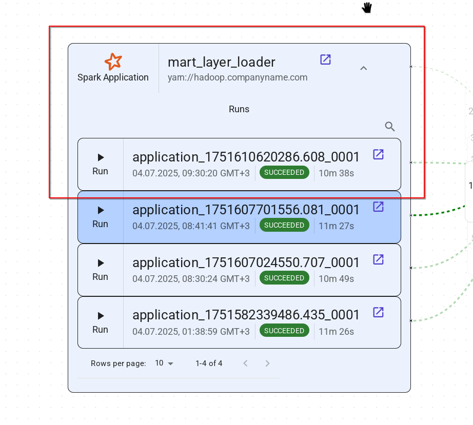 yarn://some-cluster+my-spark-session- имя приложения Spark (applicationName), работающего внутри кластера YARN (master=yarn).local://some.host.name+my-spark-session- имя приложения Spark, работающего на хосте (master=local).http://airflow-web-ui.domain.com:8080+my_dag- DAG Airflow, созданный в экземпляре Airflow.http://airflow-web-ui.domain.com:8080+my_dag.mytask- задание Airflow в DAG Airflow, созданная в экземпляре Airflow.http://flink.domain.com:18081+some_flink_application- задание Flink, работающая в экземпляре Flink.local://some.host.name+my_project- проект dbt, работающий на хосте.