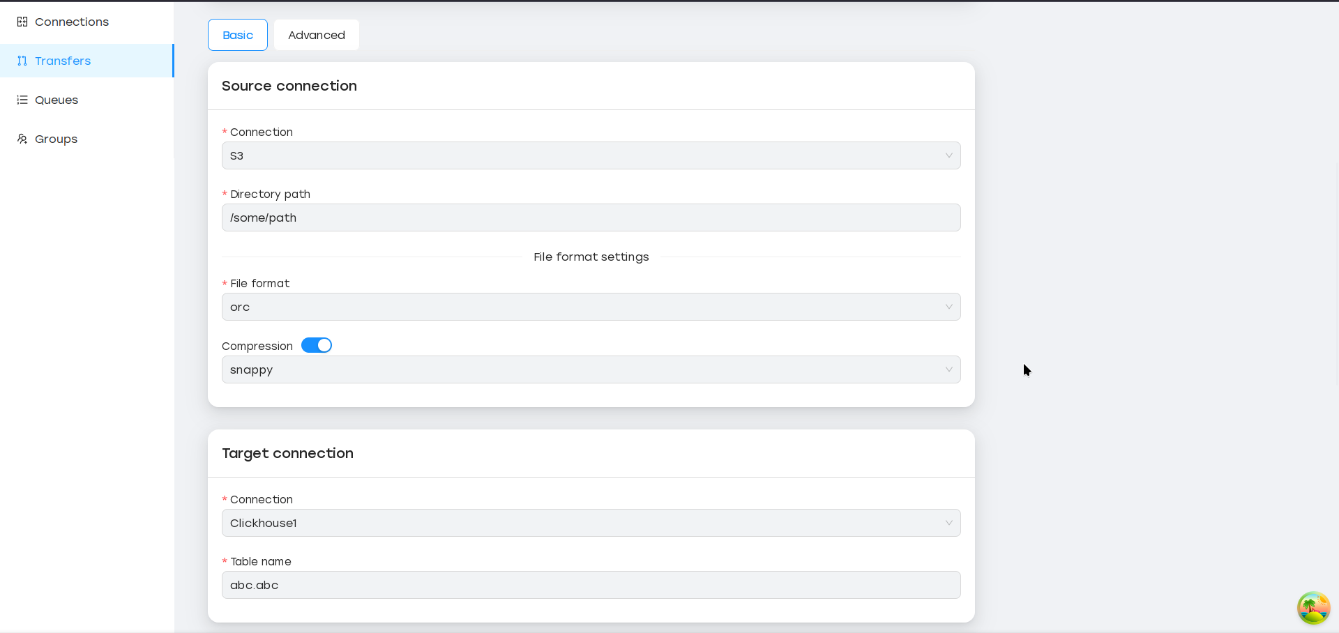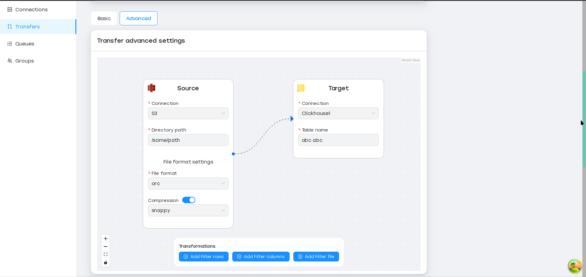 Трансфер — это сердце SyncMaster. Он описывает, какие данные следует извлечь из источника (подключение к БД + имя таблицы, подключение к файловой системе + путь к каталогу), и какова цель (БД или файловая система).