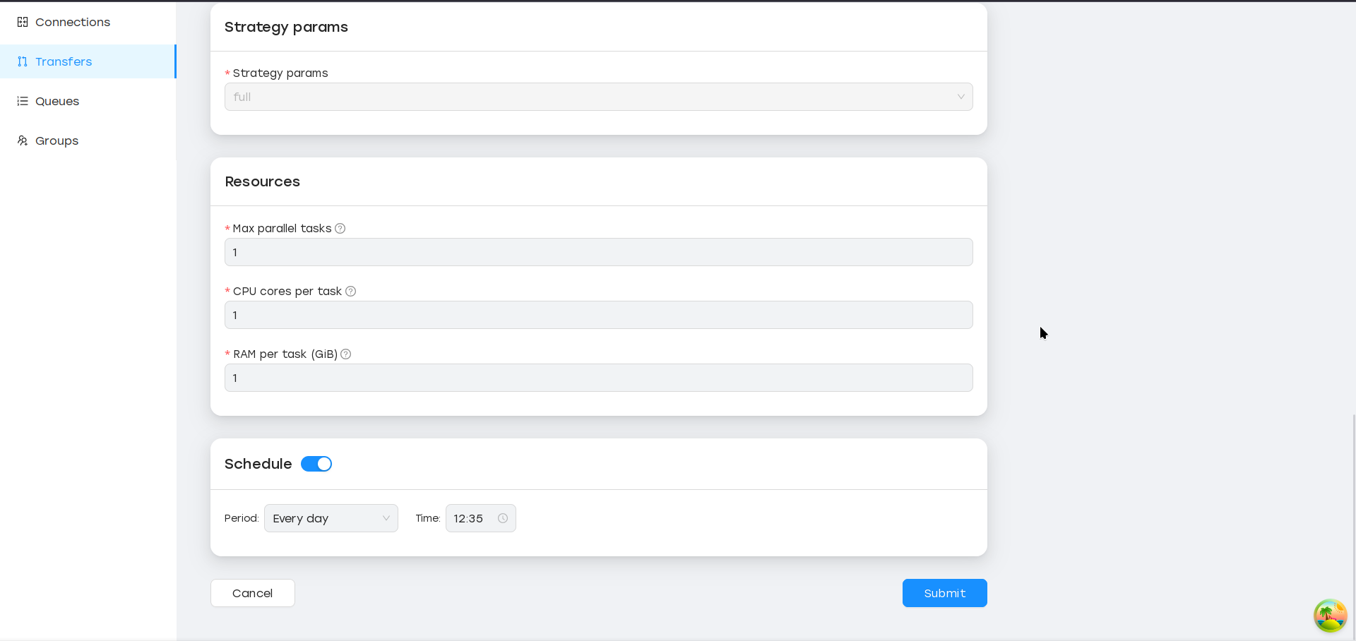 - Задание определённых ресурсов (ЦП, ОЗУ) для каждого выполнения переноса