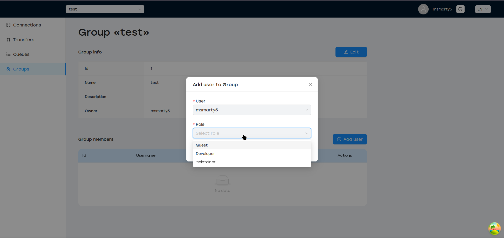 Эта роль позволяет добавлять участников в группу и назначать им определенные роли: