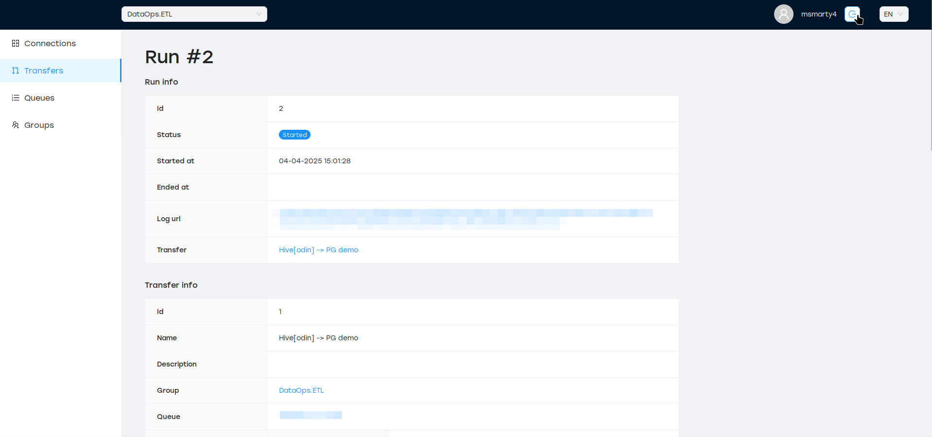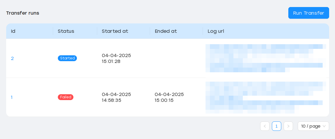 Каждый раз при запуске передачи (вручную или по расписанию) SyncMaster создаёт отдельный запуск, который отслеживает состояние процесса ETL, URL-адрес журналов рабочих процессов и т. д.