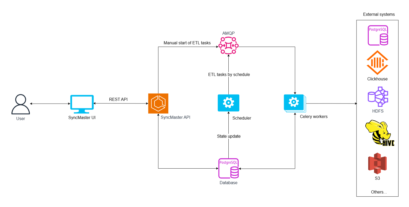 - Воркер(рабочий процесс), выполнение фактических работ по передаче (процессы ETL).
