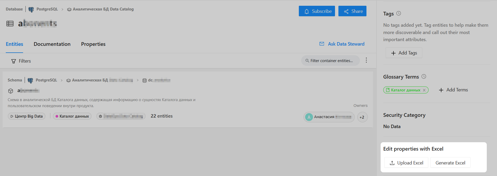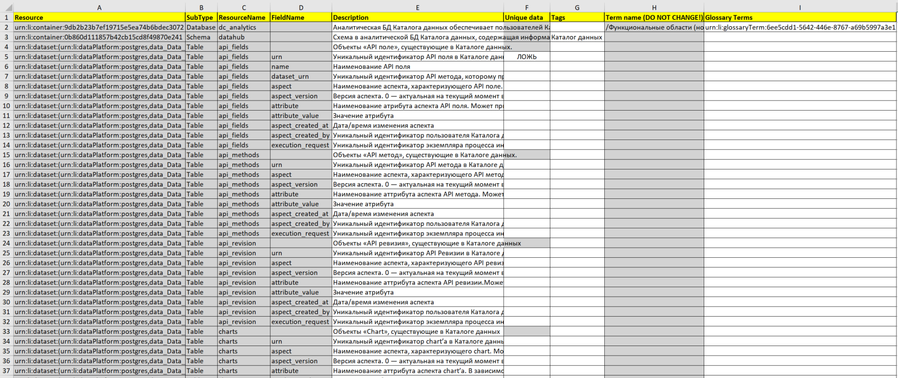 Для того чтобы массово редактировать объекты Каталога данных можно использовать редактирование данных c помощью Excel. Для этого в Каталоге данных предусмотрена возможность генерировать файлы в формате Excel. Далее в такой файл можно внести изменения и снова загрузить в Каталог данных. Ниже можно ознакомиться с пошаговой инструкцией по выгрузке и редактированию объектов физической модели.