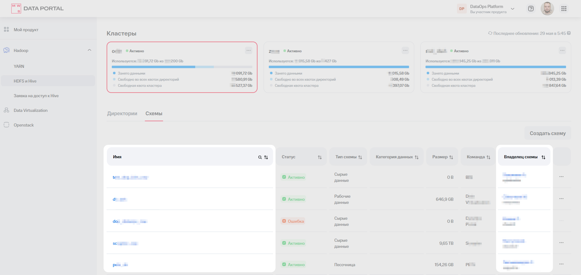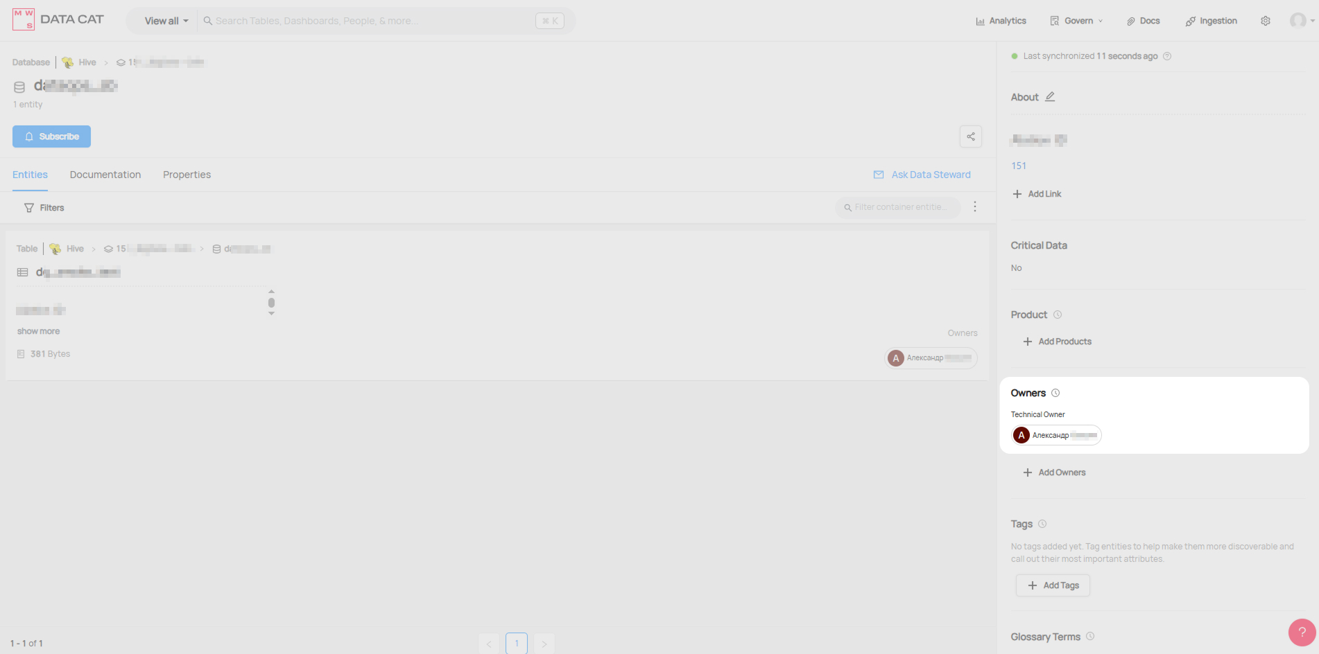 В том случае, когда MWS Data Cat поставляется вместе с MWS Data Portal, между ними может быть настроена интеграция, позволяющая импортировать владельцев схем Hive, создаваемых/редактируемых в Potal и отображать их в Cat.