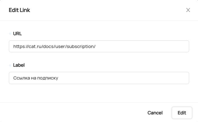 | Указать URL и метку (Label) ссылки |