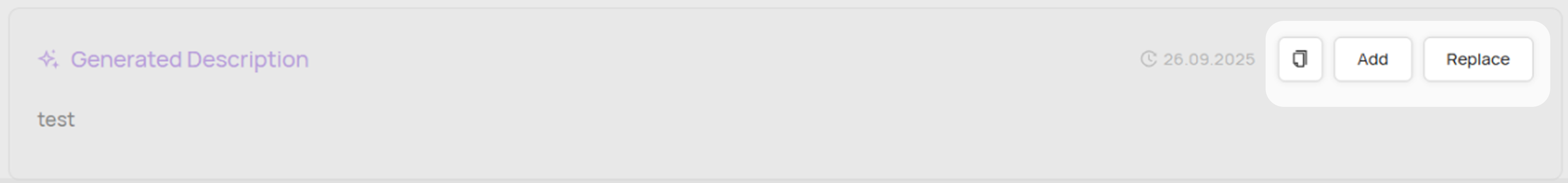 В правой части панели Generated Description располагаются кнопки для работы с AI-описанием: