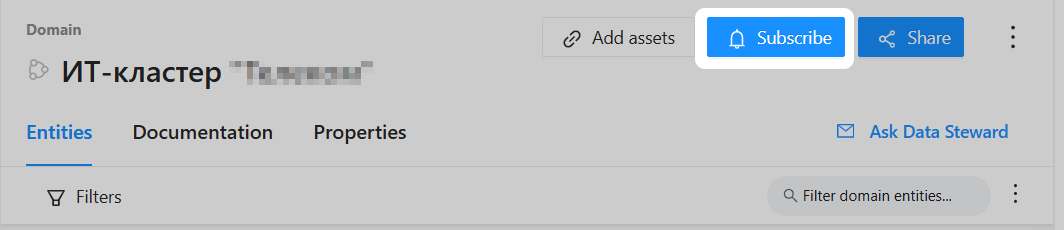 На странице объекта в Каталоге данных представлена панель с несколькими кнопками, которые позволяют выполнять различные действия с объектами. Вы можете сделать объект мастер-источником, поделиться им с другими пользователями, пометить как устаревший и выполнить ряд других манипуляций. Более подробную информацию о доступной функциональности можно найти в этом разделе.
