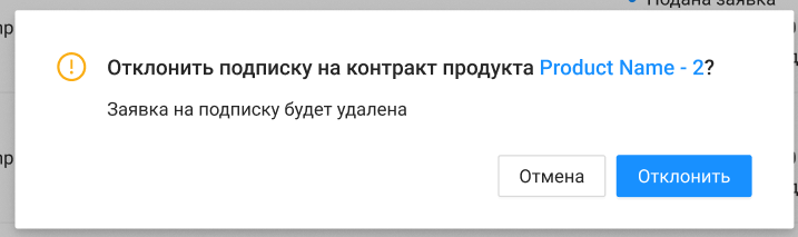 - После отклонения появится нотификация: "Подписка для продукта [Название продукта] отклонена"