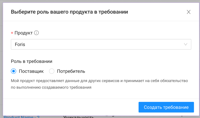 В модальном окне мастера создания требования выберите роль: «Потребитель».