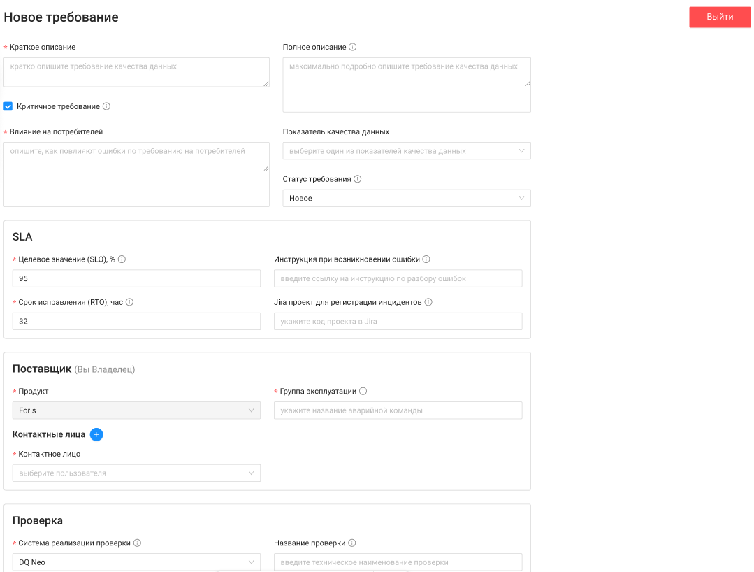 | Показатель качества данных | ❌ Необязательное | Выбор из списка показателей |