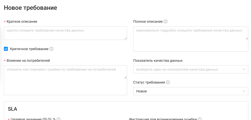 - Влияние на потребителей (обязательное, если требование критичное) — опишите, как ошибки повлияют на потребителей данных.