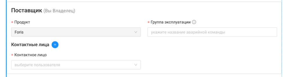 Пример: «Аварийная команда Foris». - Контактные лица (обязательное):