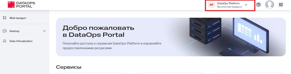 - Если вы состоите в нескольких продуктах - переключайтесь между ними кнопкой справа