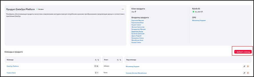 Добавление команды в продукт
