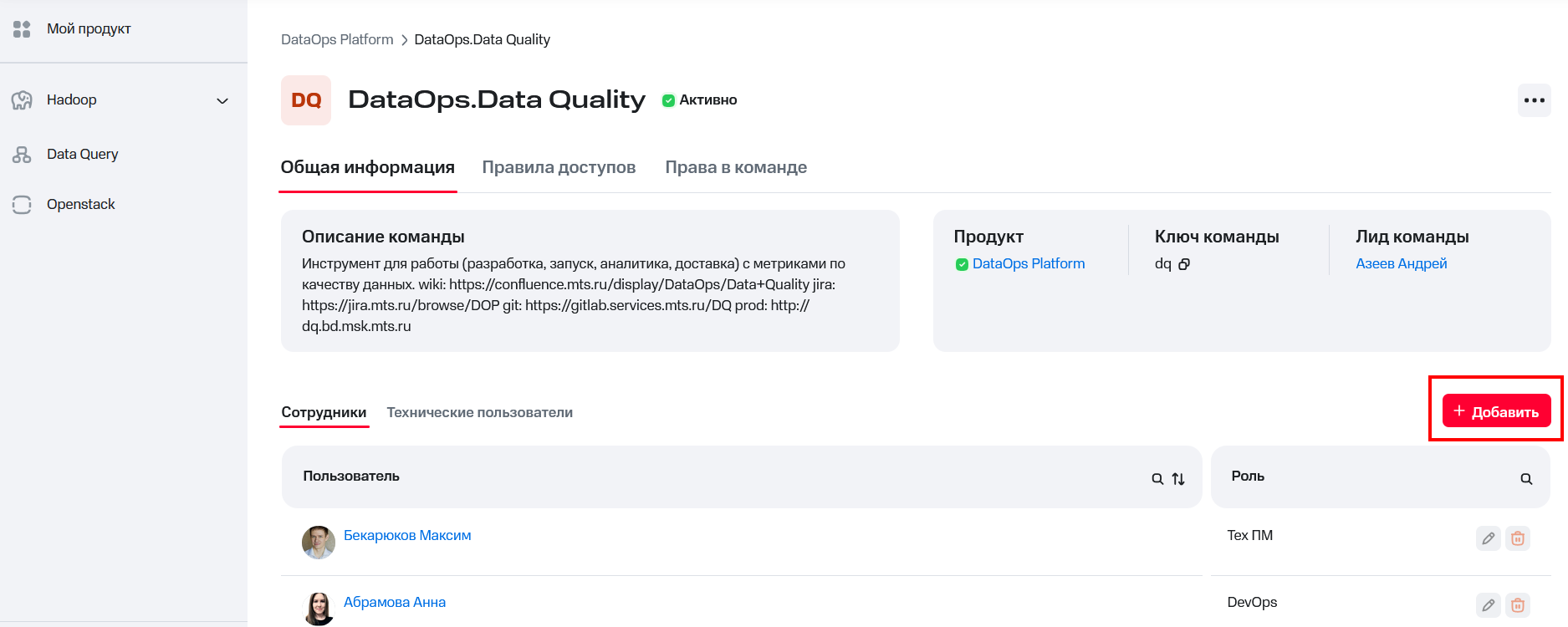Инструкция по созданию продукта и команды в DataOps Portal