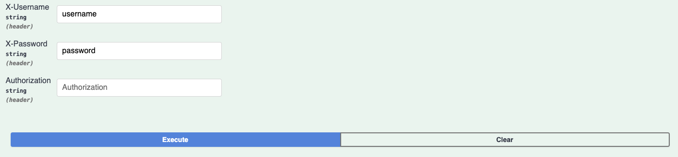 Далее передаем в поля X-username и X-Password данные от УЗ DQ или token и нажимаем кнопку "Execute".