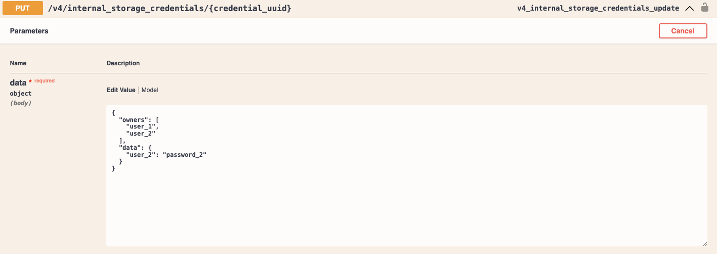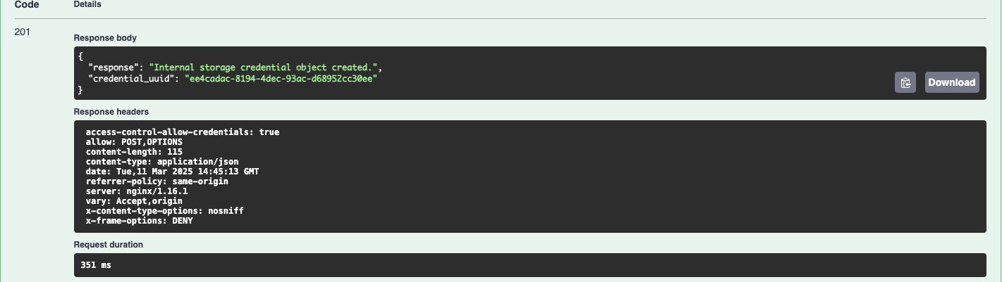 Для этого нам потребуется эндпоинт /v4/internal_storage_credentials/{credential_uuid}.